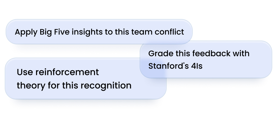 Drives smarter leadership with feedback and coaching grounded in Stanford’s 4Is and Big Five personality models – making guidance more relevant and impactful.